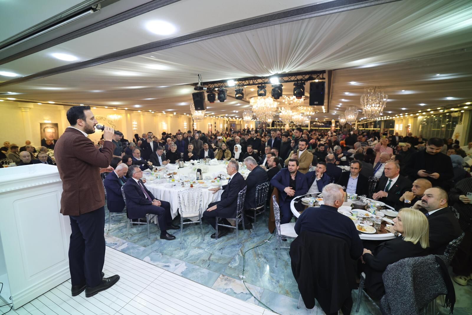 Ramazan’ın manevi atmosferinde gerçekleşen programda, aynı sofrada buluşan yüzlerce davetli gönül birlikteliğinin en güzel örneklerinden birini yaşadı. Salonların hınca hınç dolduğu programda içerideki sıcak atmosfer, mart akşamının serinliğini adeta unutturdu.