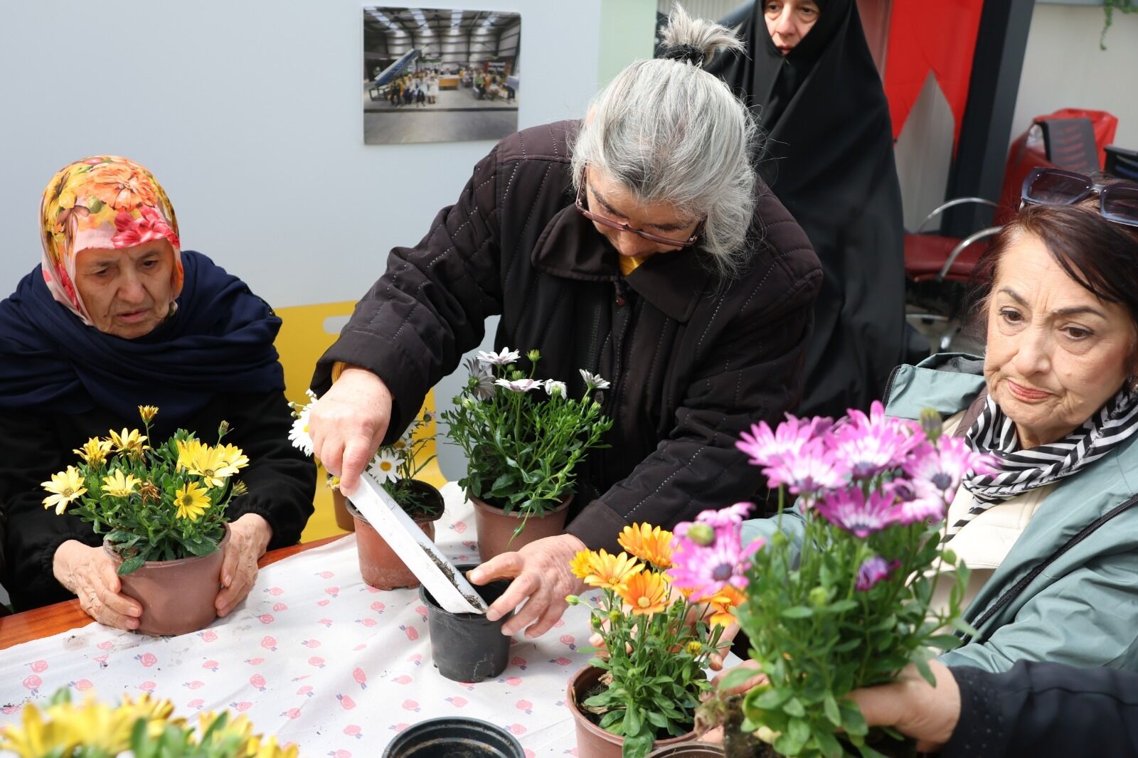 Kompost makinesinden elde edilen organik meyve gübresi ile etkinliğin en anlamlı anlarından biri yaşandı. Büyükler, bu gübreyi kullanarak kendi elleriyle çiçek dikimi gerçekleştirdi. Toprağa dokunmanın huzurunu yaşayan katılımcılar, hem üretmenin hem de doğaya katkı sağlamanın mutluluğunu yaşadı. Etkinlik sonunda, özenle diktikleri çiçekler kendilerine hediye edilerek bu güzel gün kalıcı bir hatıraya dönüştürüldü.