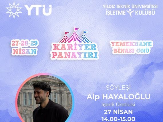 Kariyer odaklı etkinlikleriyle adından sıkça söz ettiren Yıldız İşletme Kulübü’nün organize ettiği panayır, farklı sektörlerden katılımcıları ve öğrencileri bir araya getirmeyi hedefliyor. Toplam 1200 metrekarelik alana kurulacak çadırda gerçekleşecek etkinlik, üç gün boyunca 10.00 ile 18.00 saatleri arasında ziyaretçilerini ağırlayacak.